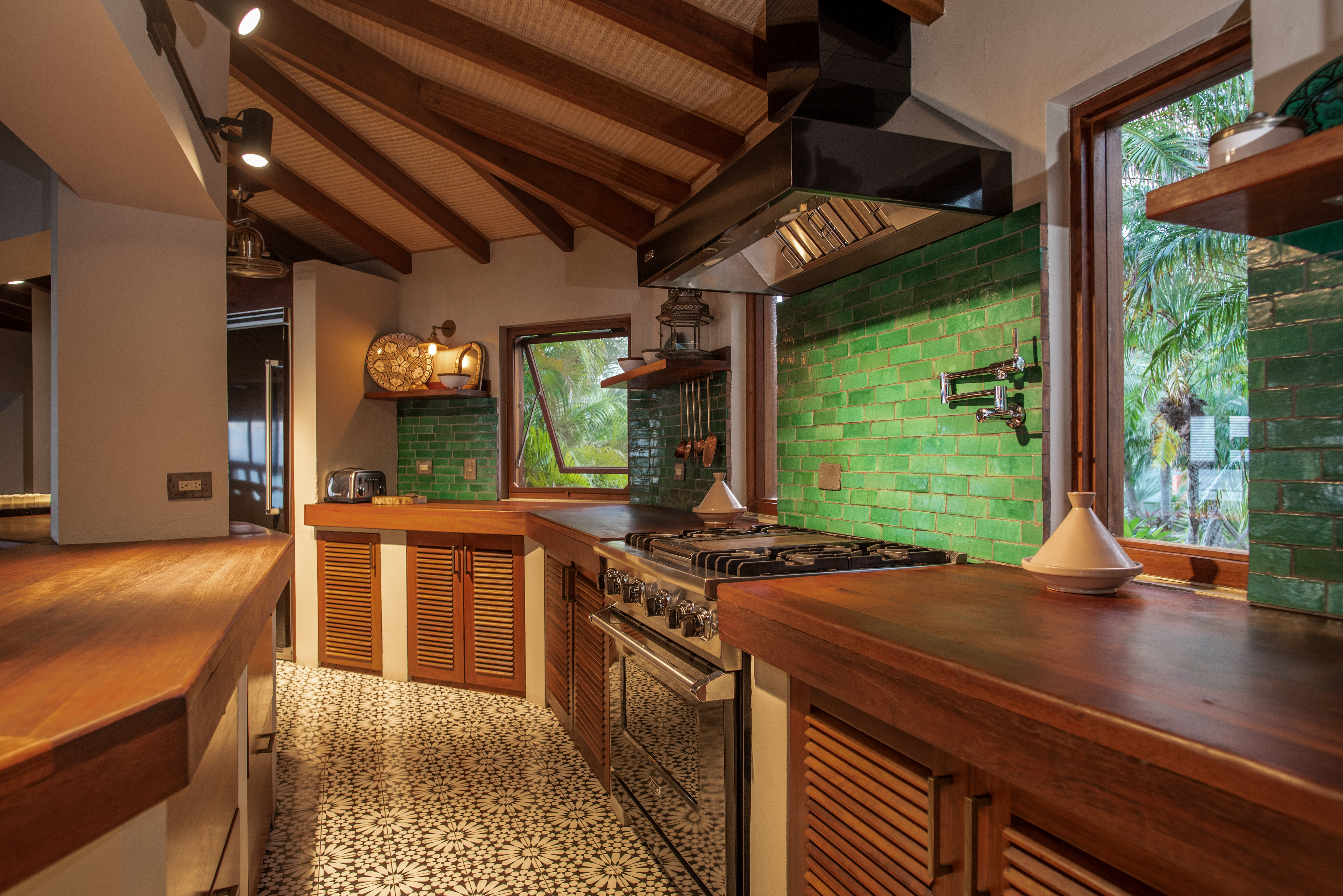Nestled on two acres of tropical garden on a private headland, the 12,000 sq ft villa’s copper-peaked pavilions accommodate a total of 16 guests in five ocean view suites plus a sixth principal master suite overlooking the beach. Designed to feel like a home away from home, the villa’s interiors are tastefully decorated with muted colours & hardwood furnishings while exterior spaces look out over white coral stone terraces, emerald green lawns & azure seas.