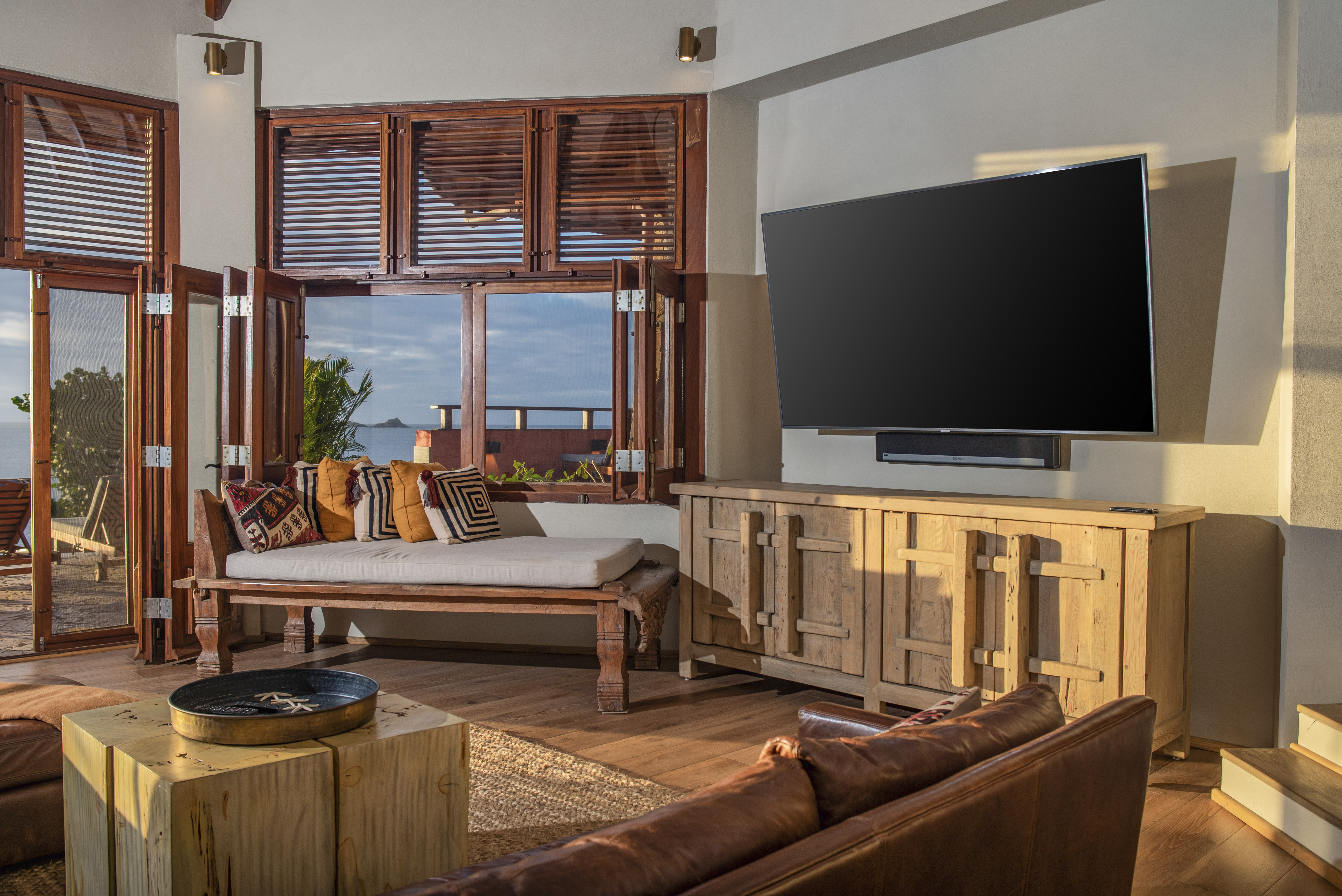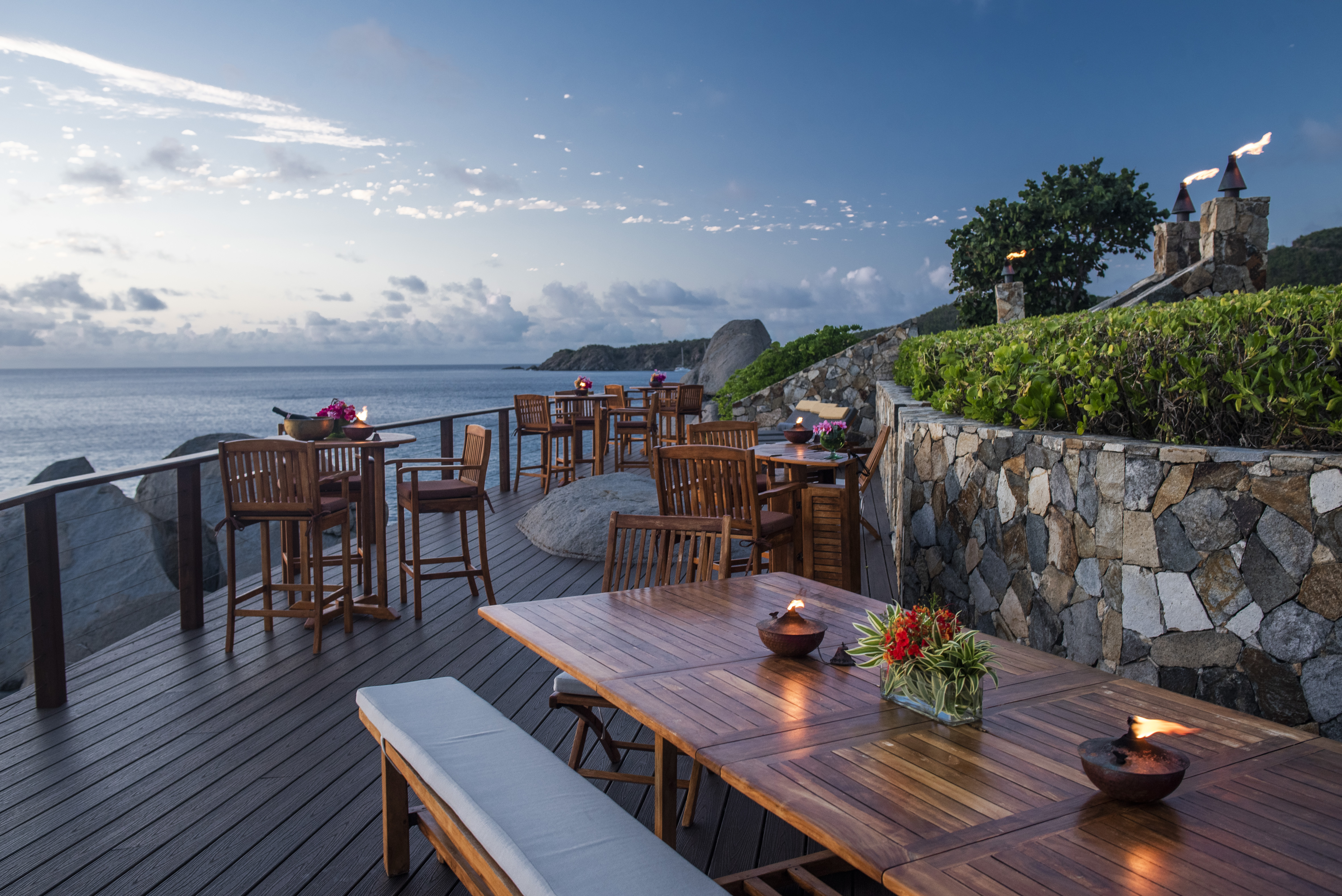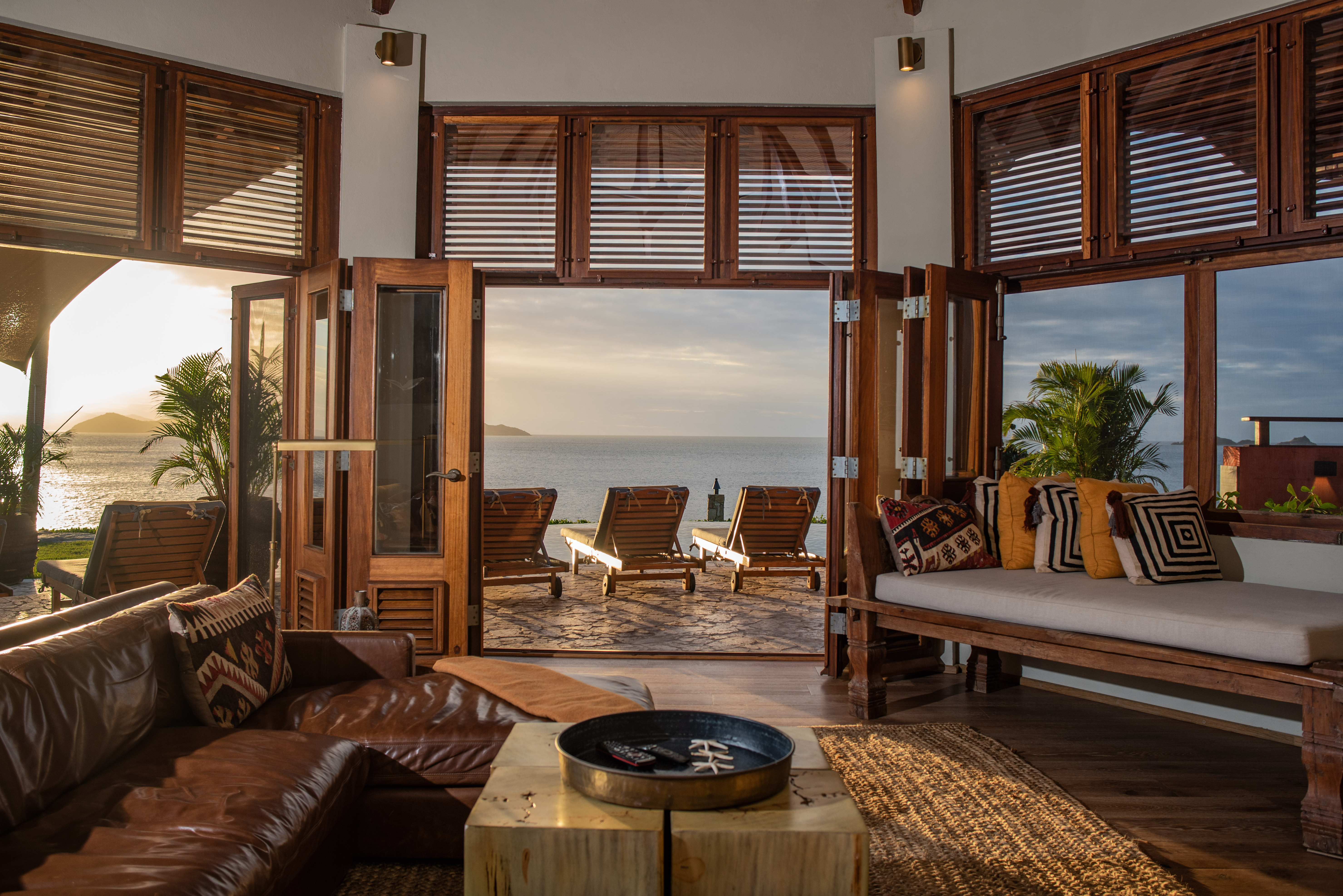A spacious main pavilion incorporates open plan indoor & outdoor living, dining, entertainment areas. There is a full service bar & cocktail lounge, an infinity pool with giant shade sails for sanctuary from the midday sun. Beyond the main pavilion a panoramic deck sunken into the boulders at the water’s edge makes an idyllic spot to watch impressive BVI sunsets with complimentary cocktails & canapés.