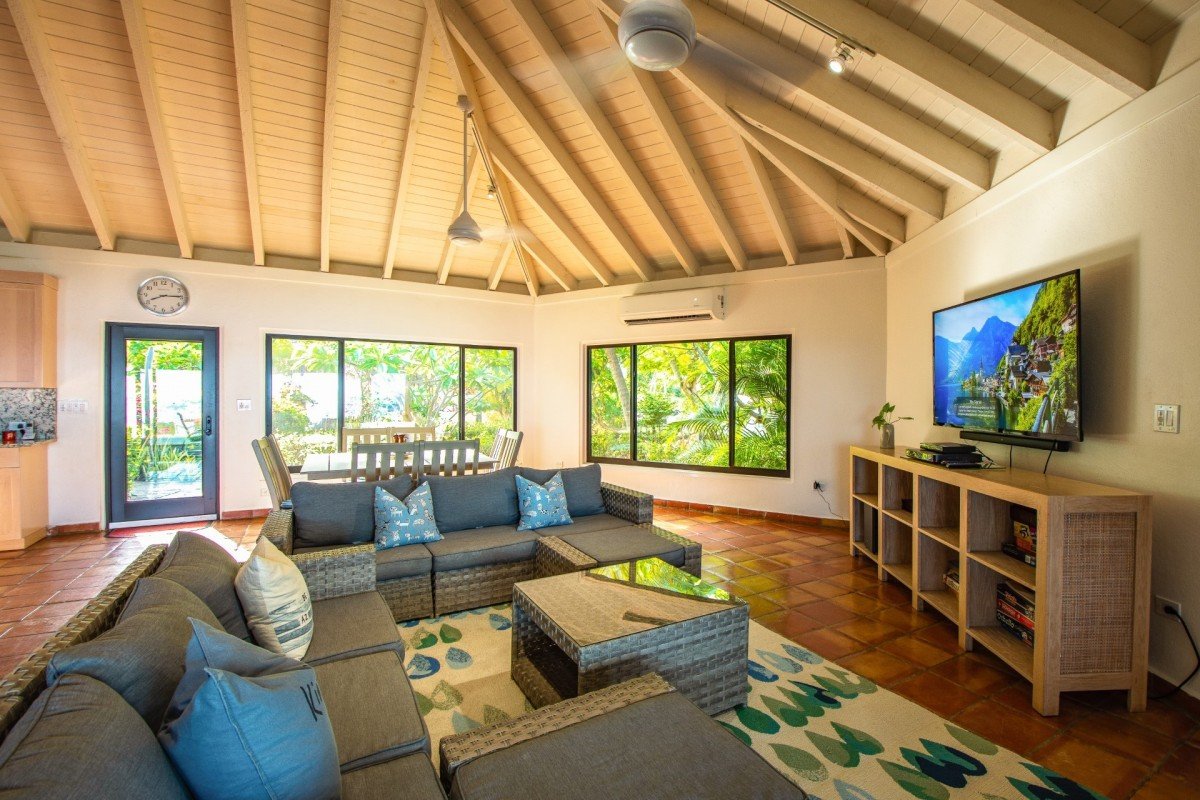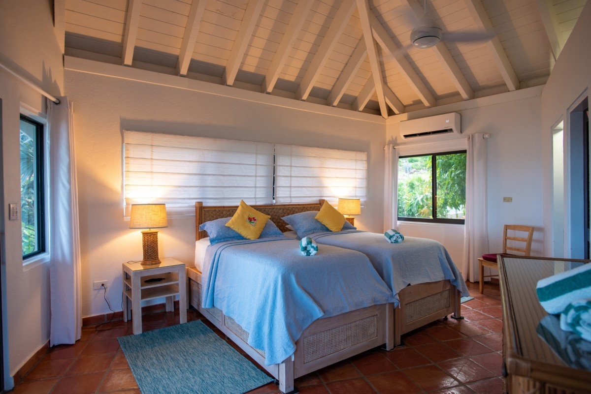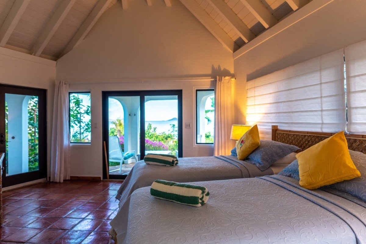 Beach Dreams is a wonderful villa right on Mahoe Bay, with its 4 air-conditioned bedroom and bath suites. The views over the ocean are simply stunning! All of the rooms open onto the terrace where you can enjoy the pool or head out to the beach. The great thing about Beach Dreams is every bedroom is a Master Bedroom, so everyone gets a great room to stay in.