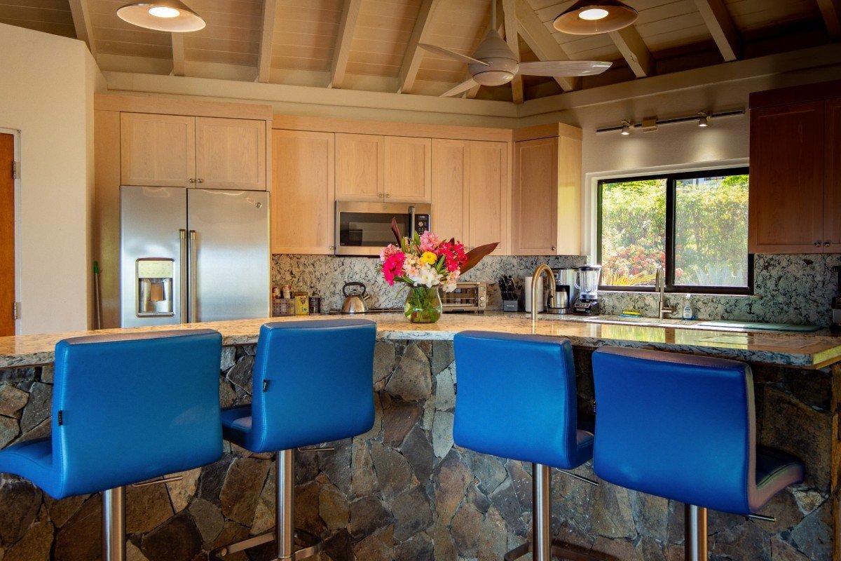 There are lots of lovely loungers to just sit back and relax and take in the breezes from the Ocean. The Great Room has a high vaulted ceiling to give this space a large airy feel to it. There is TV/VCR/stereo, lots of movies if you fancy staying in for a while, plenty of books to hand as well if you enjoy readings. There is high-speed internet which is always good for surfing the net.
