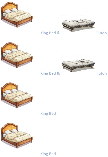 - 4 bedroom - Kings Bed's (2 extra futons) with air conditioning & bathrooms, hair dryers