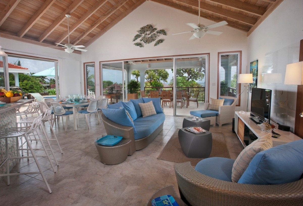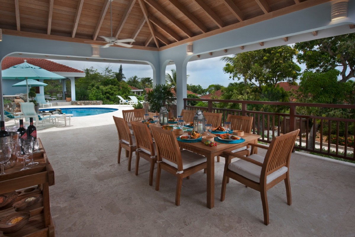 The villas has recently been renovated & offers a large pool terrace which is a great place to hang out with your friends! Sunbed offer you to pick up some of those lovely sunny rays, or there are some shady spots for you to read & enjoy the outdoor space. There is an outdoor kitchen with a sink, bar, refrigerator & BBQ so that you can truly enjoy the lovely Caribbean breezes & the aroma of locally cooked BBQ. Alfresco dining is also available nearby if you want someone else to cook!