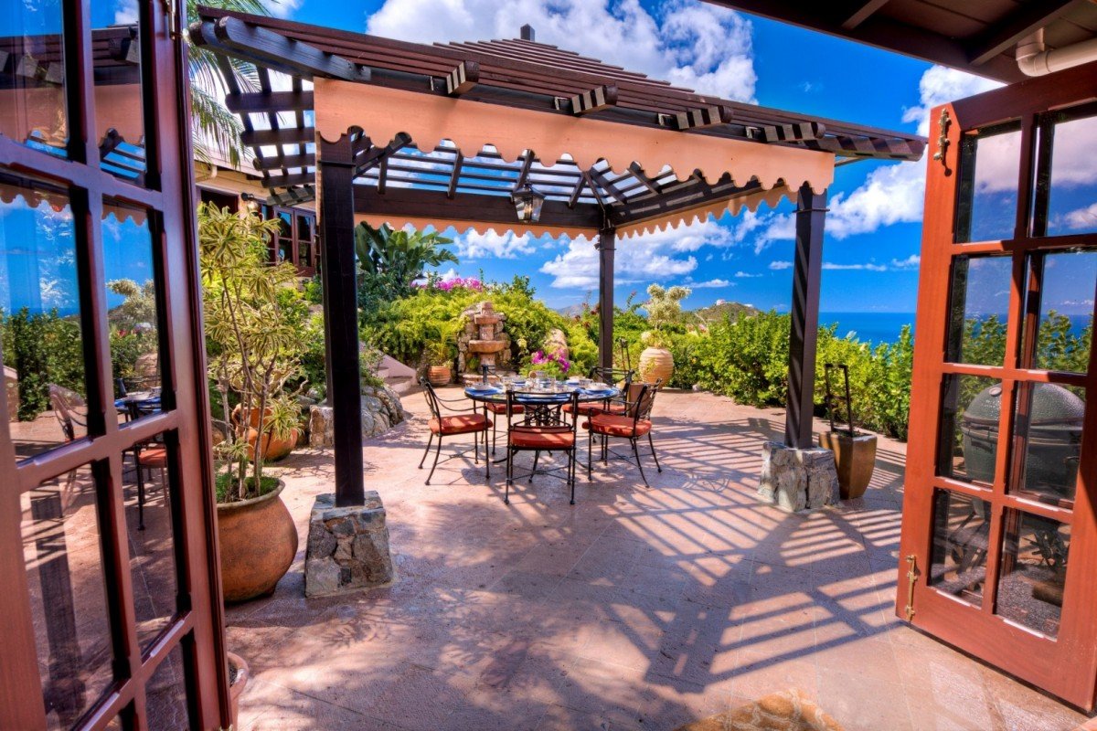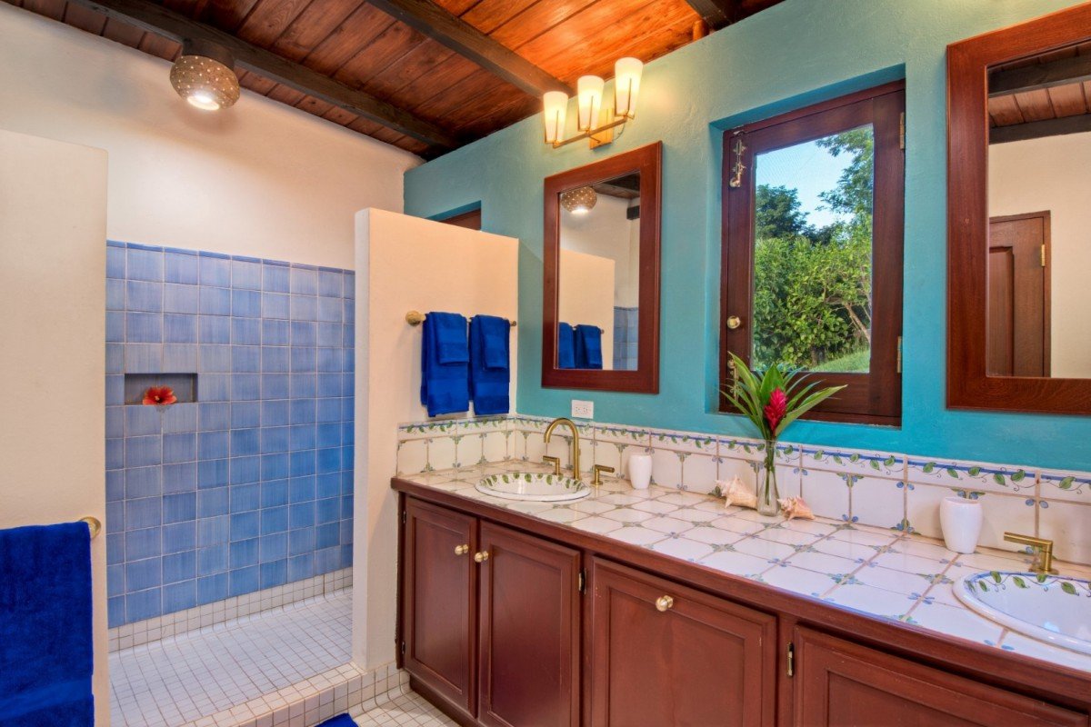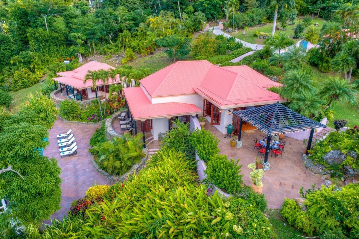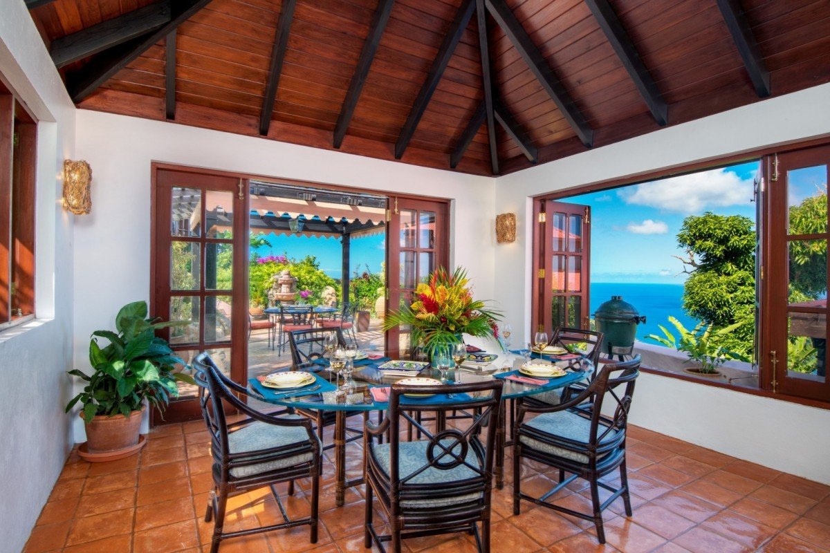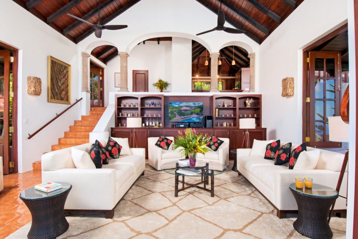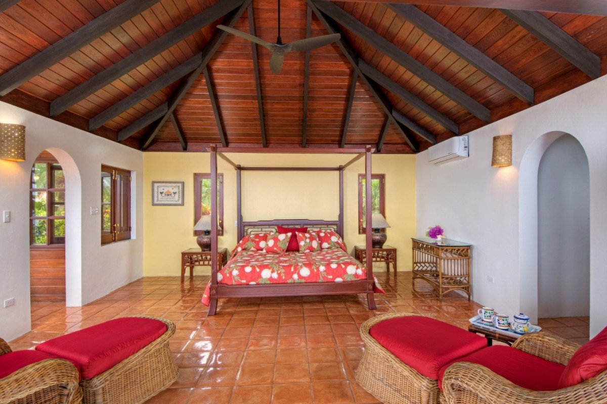 The main house features a lovely veranda opening out onto those wonderful sea views. In the garden is an interesting alfresco dining pergola for you to enjoy during your stay. The pool has an infinity-edge which cascades into the magical views beyond. The Great Room offers terra cotta, mahogany & white wash design, The sunken Living room & Kitchen with formal Dining area. Garden views make this an ideal place to enjoy friends & family whilst on holiday.