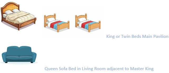 - 5 bedrooms (4 Kings, King/Twin & Queen sofa bed) – with air conditioning & bathrooms