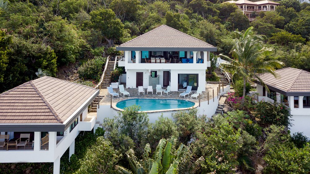 The villa offers lovely ocean views & breezes from every aspect. There is easy access to the sandy beach on the North Sound of Virgin Gorda. Dos Sols has about an acre of land around the villa with lush tropical planting.