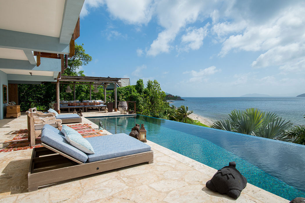 The villa offers large decks around the infinity-edged pool. From the deck you can enjoy wonderful views from St John in the distance to The Dogs which is a mile away. There are lovely artisan stone pathways which brings you to a virtually private beach to offer walks, snorkeling. Kayaks await those wishing to explore nearby beaches.