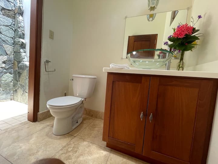 The charming garden of mature fruit trees & bright flowering plants reflect harmony with nature. You may be lucky enough to sight a green iguana in the garden or the Blue Heron which visits the pool at dusk!