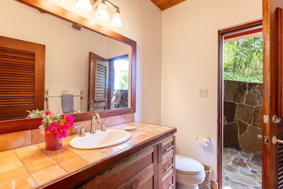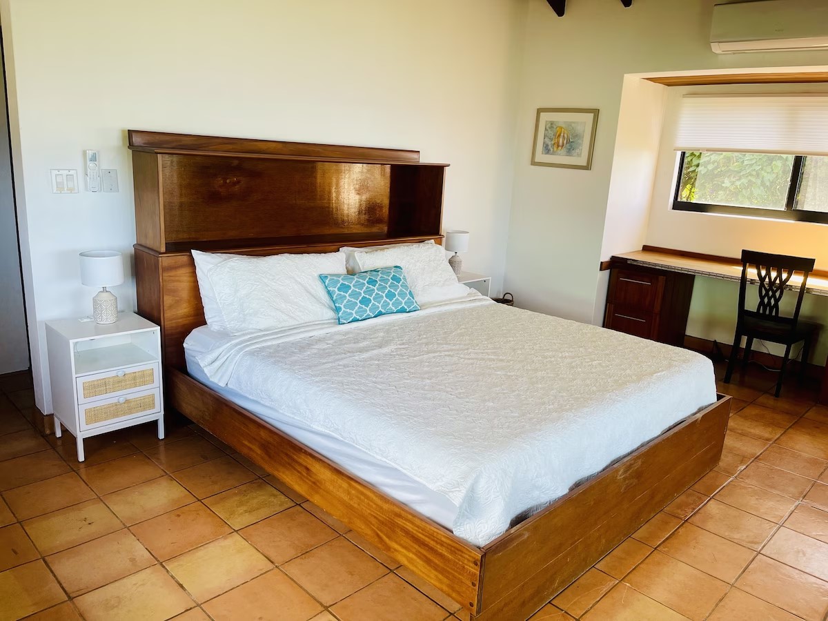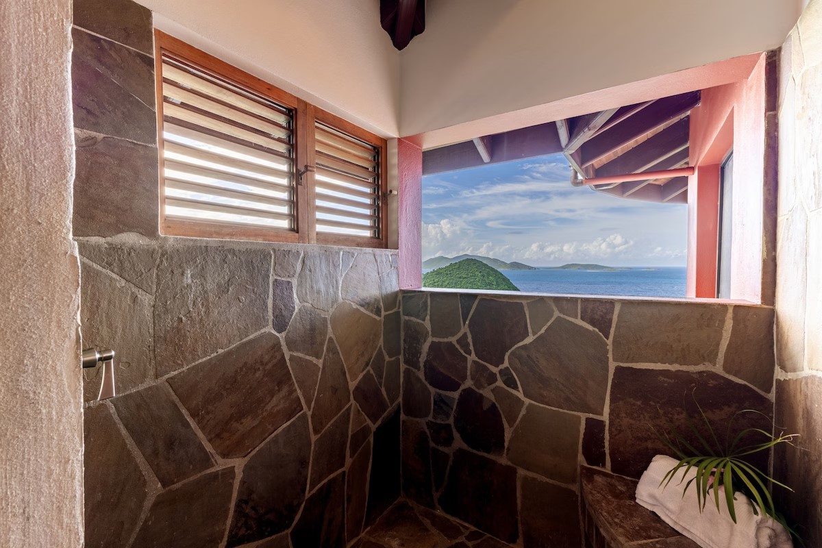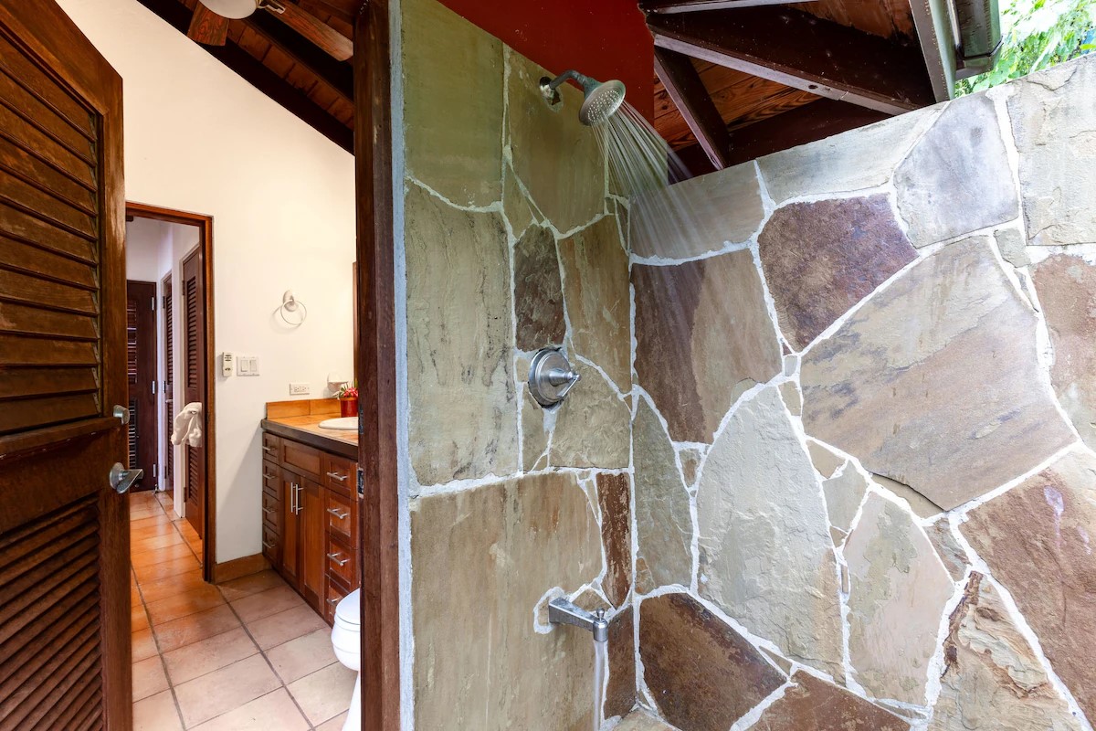 There are 5 air-conditioned bedrooms with Queen Beds & ensuite bathrooms with outdoor stone showers offering a wonderful shower time with nature.
