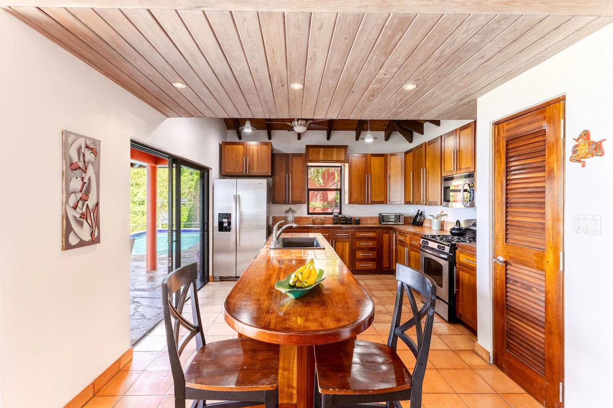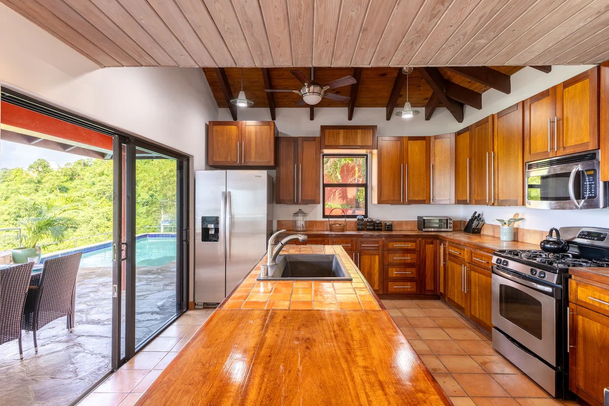 Paradiso has a well-equipped kitchen with gorgeous views of the ocean whilst preparing your meal. All windows of this property offer ocean views throughout. There is a large outdoor area with a pool, Alfresco dining with BBQ grill. The living room has a vaulted air-conditioned space & has one large sea-facing glass wall that opens in sections, allowing the beautiful interiors & airy exteriors to merge effortlessly. There are high ceilings in the living room with luxurious sofas for you to sit back & relax. There is a well-equipped kitchen with indoor dining in an open-plan seating. The kitchen is ideally placed within a few steps of a large retractable glass door connecting the kitchen with a beautiful outdoor dining area on the terrace.