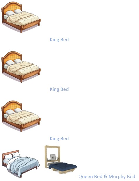 - 4 Bedrooms (King Beds, 1 Queen, 1 Murphy Bed, air conditioning & ensuite bathrooms