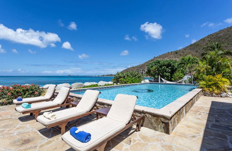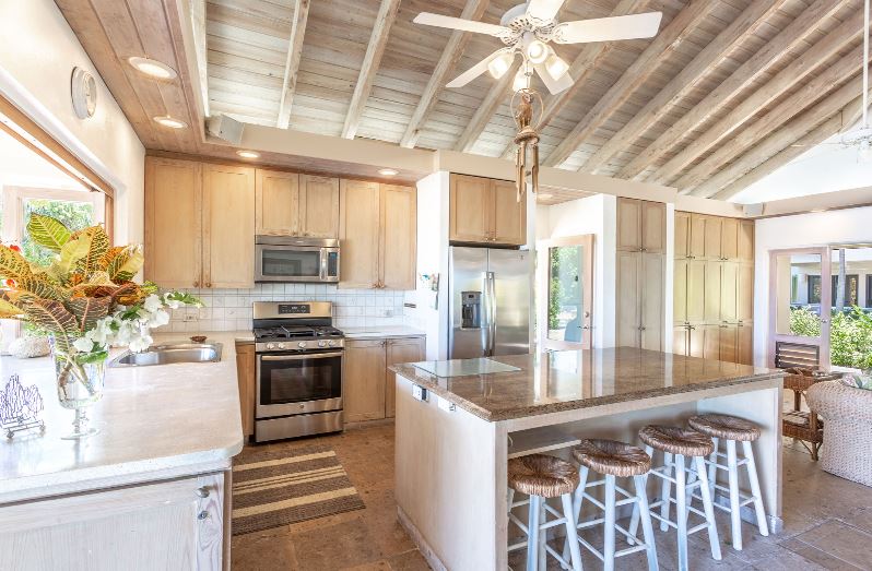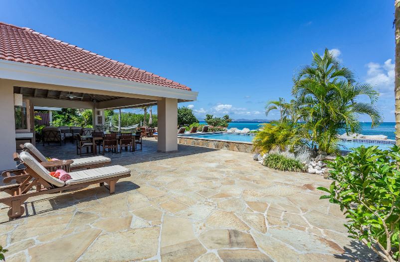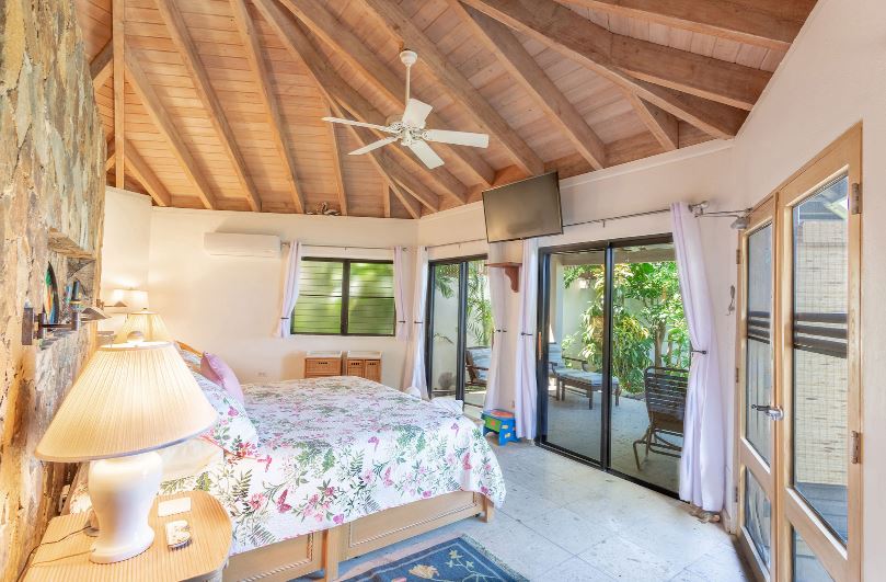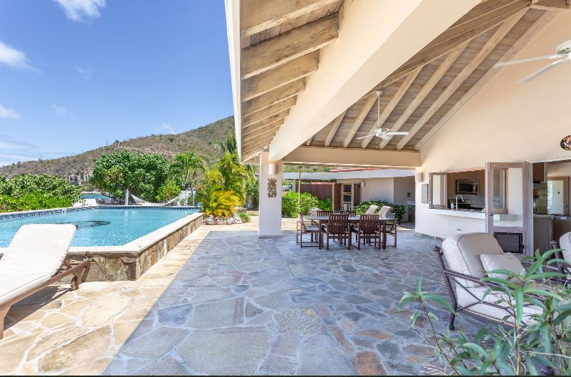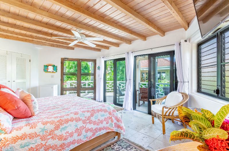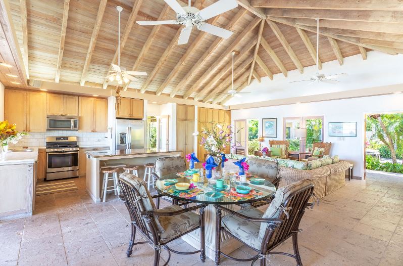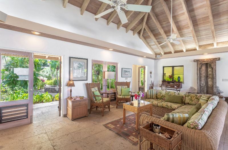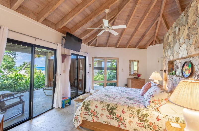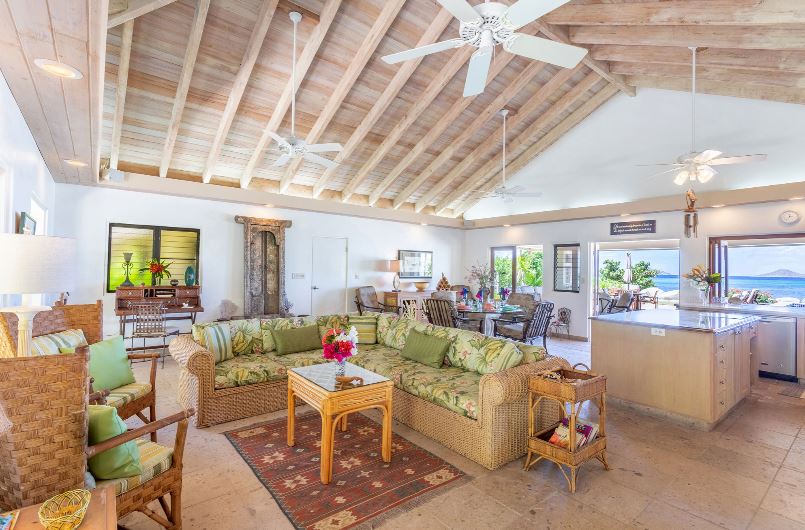 Sea Fans is a luxury 4 bedroom villa located right on the pure white sands of Mahoe Bay. The main house accommodates living, dining and kitchen and has a high vaulted ceiling cooled by ceiling fans. The kitchen features everything you could need and has an island in the centre with 4 breakfast stools. Friends can sit with a glass of wine while cook prepares the meal.