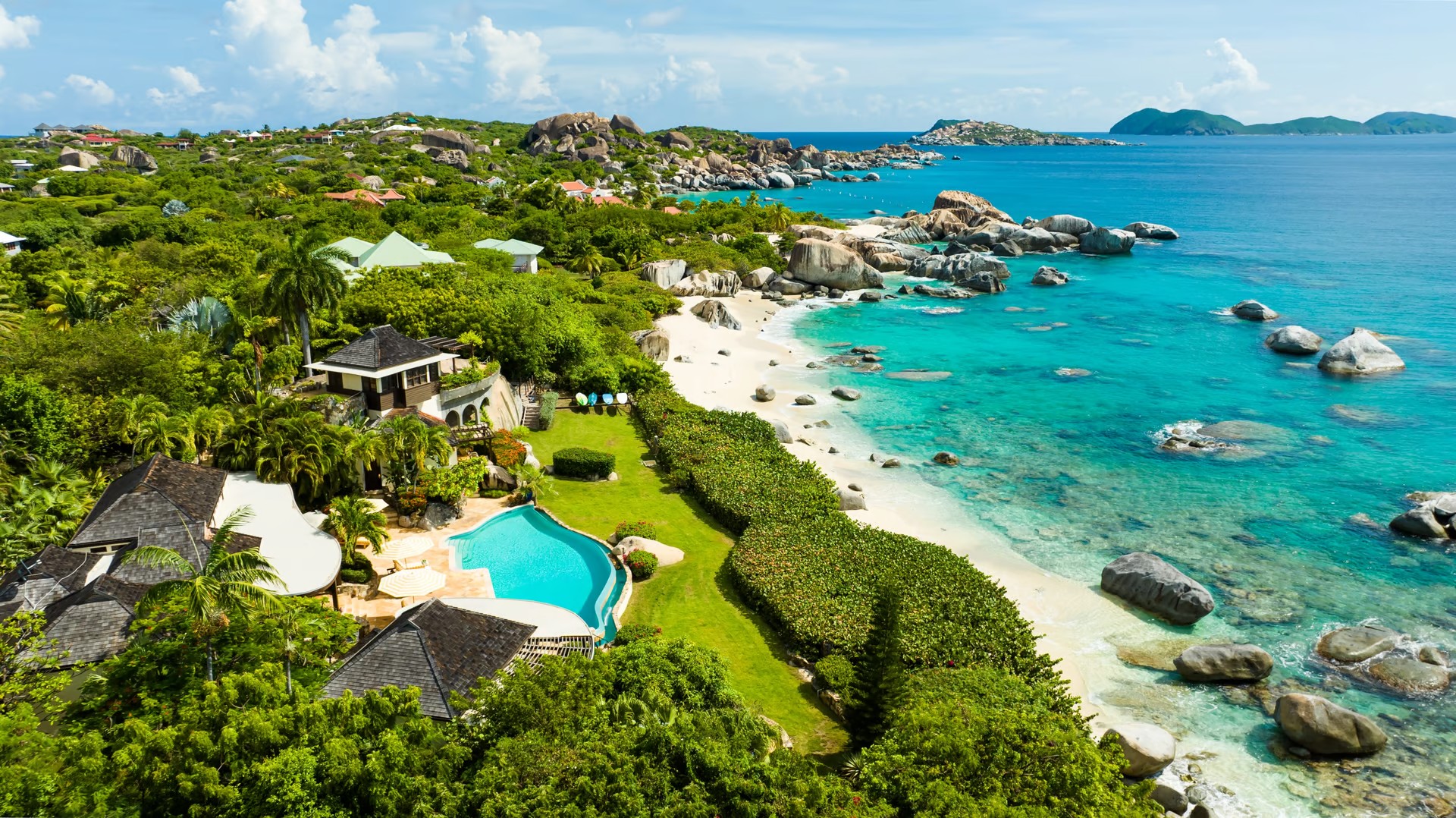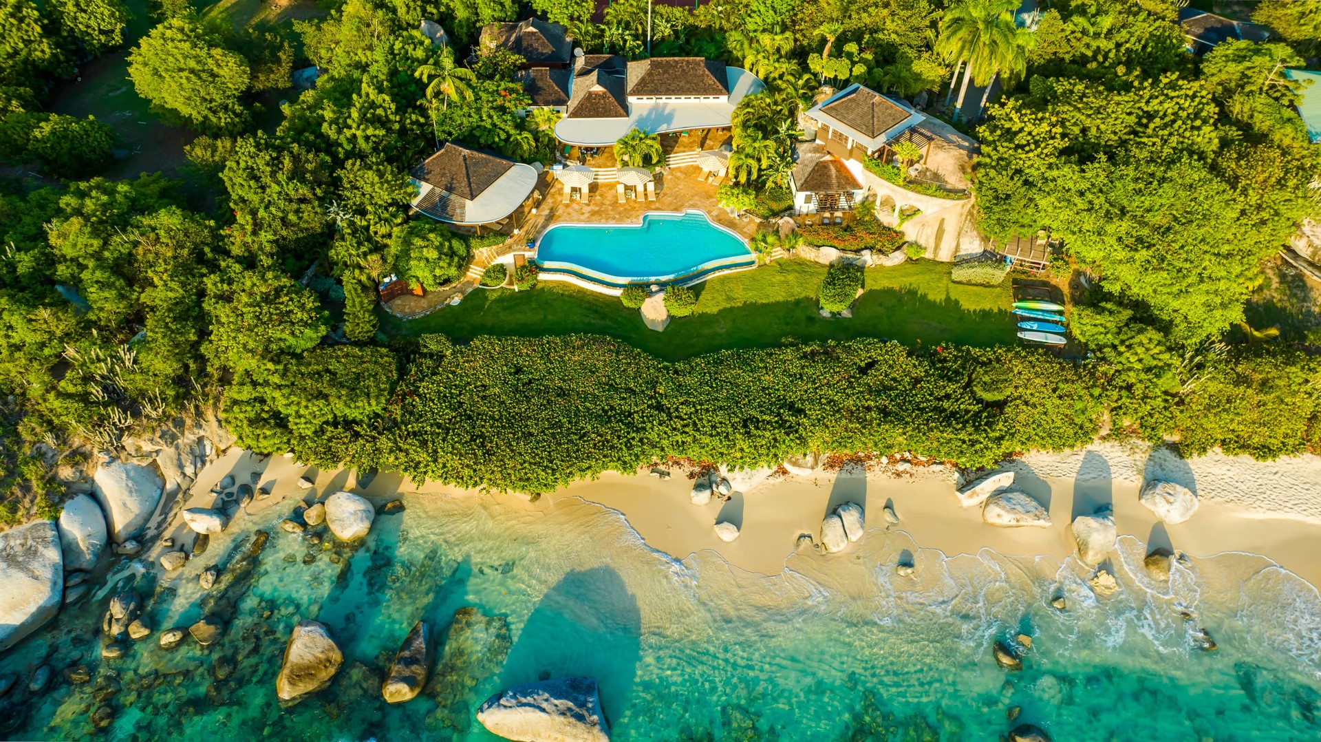 Sol y Sombra is a luxury six-bedroom villa in Little Trunk Bay, on Virgin Gorda. This beachfront villa enjoys a spectacular beach & is minutes from the infamous Baths. With the beaches of Little Trunk Bay & Valley Trunk the property can be accessed via a private gate which offers the opportunity to enjoy sunbathing or snorkelling right there.