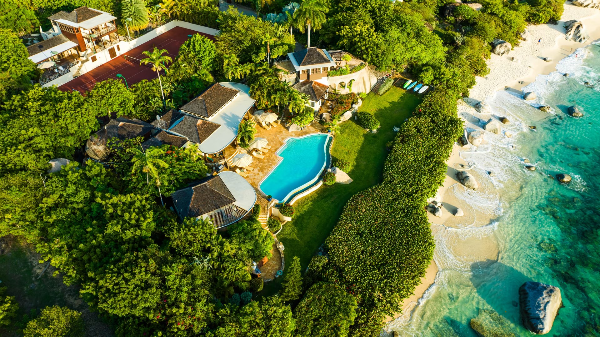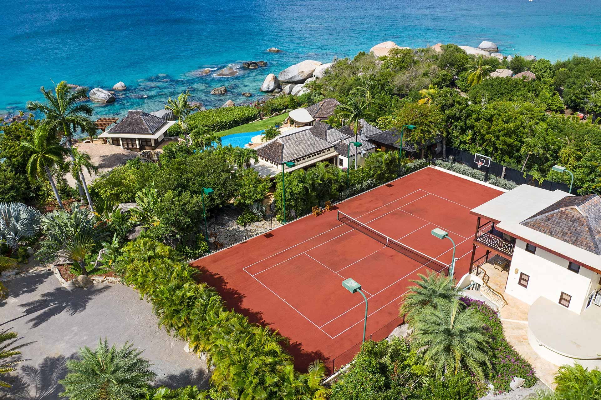 The villa offers a tennis court with night light, fully equipped gymnasium, kayaks, paddle boards, snorkel gear & pool toys which are included in the rental of this property. There is also daily housekeeping, concierge service & houseman are also on hand to ensure guests’ needs are met.
