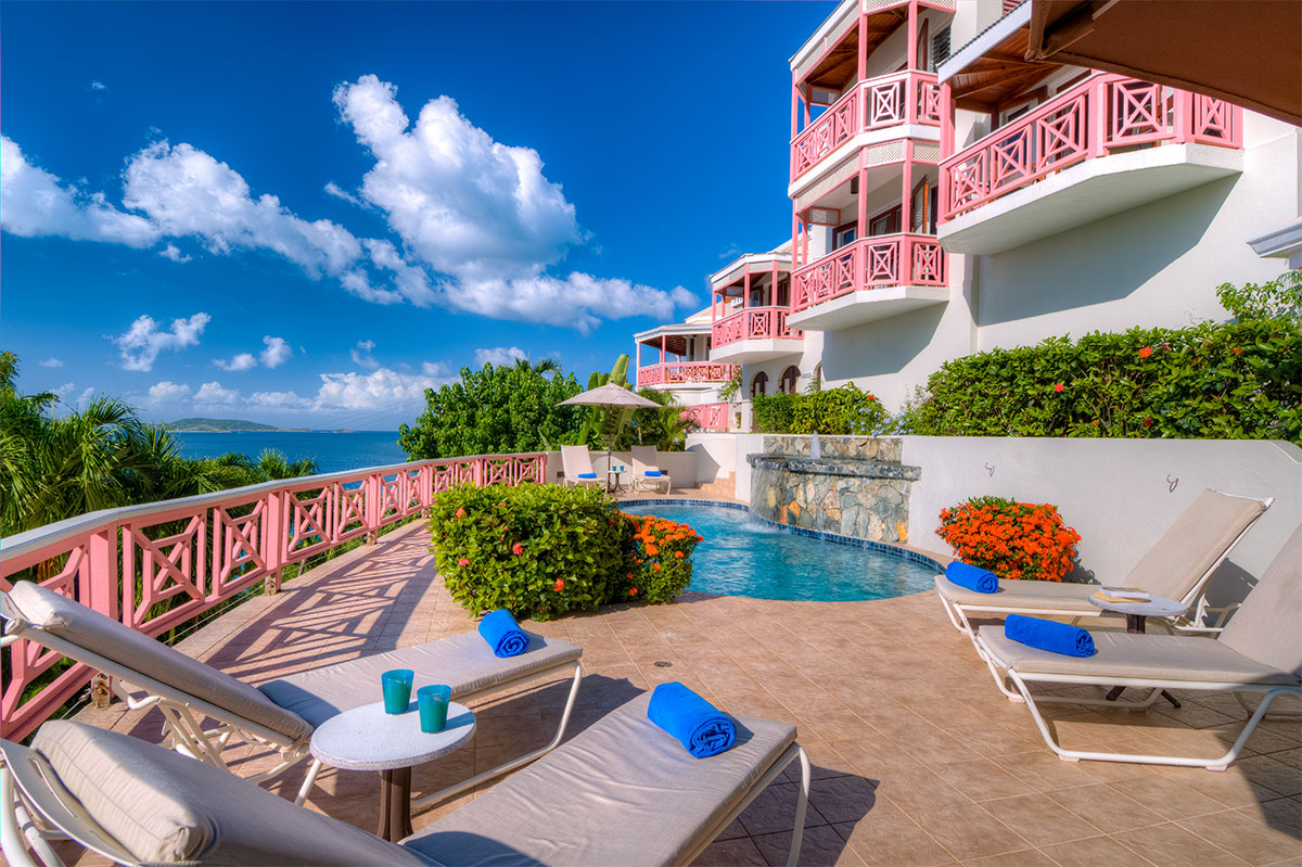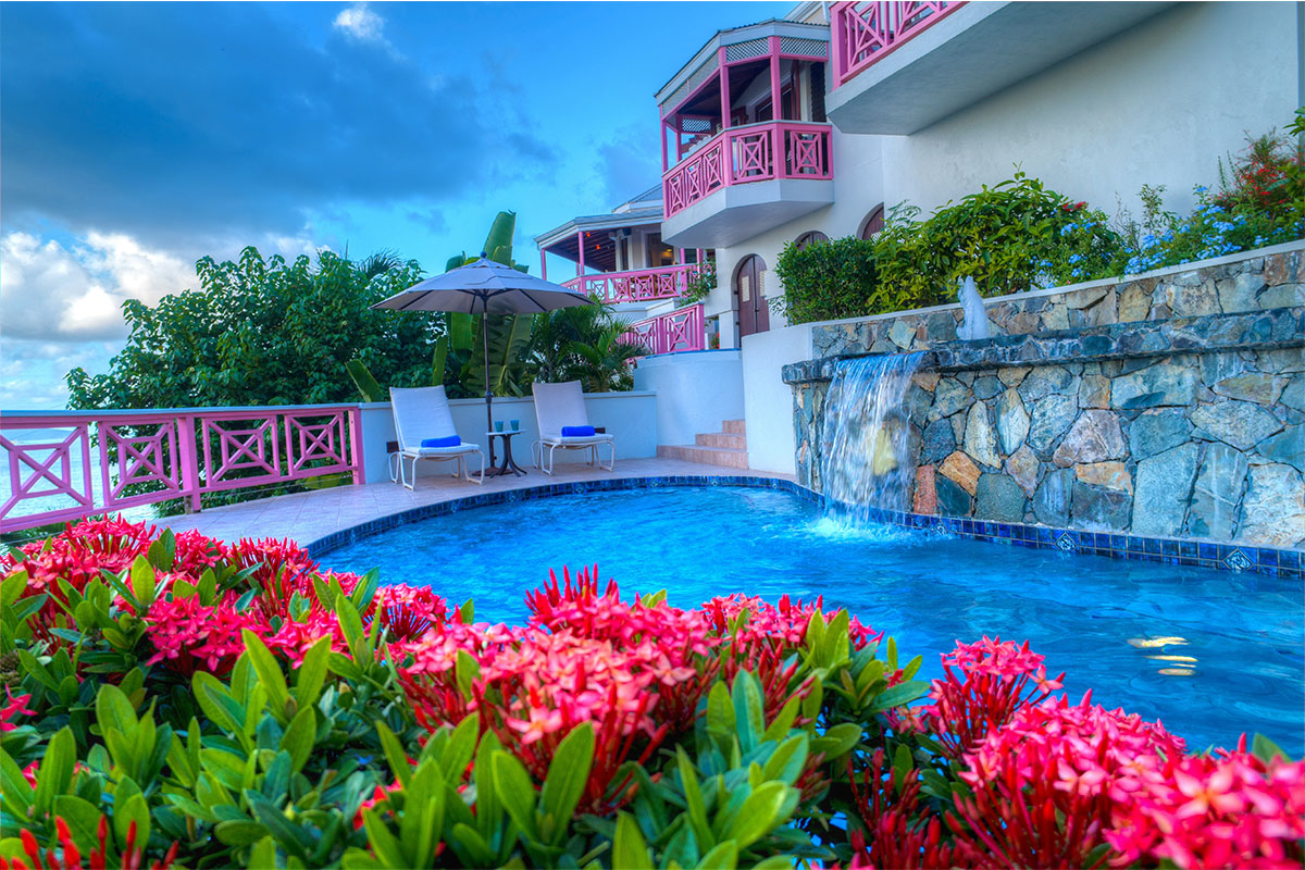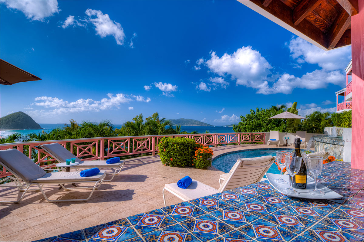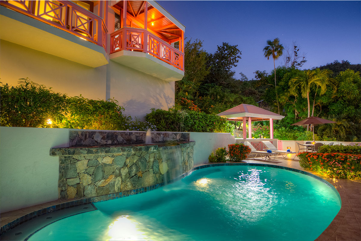 Sunset House has 5 large bedrooms, all with en suite bathrooms & private balcony with fabulous Long Bay, Jost Van Dyke & island views. The pool has a waterfall for you to sit back, relax & take in the wonderful Caribbean breeze, a hot tub also compliments the area!