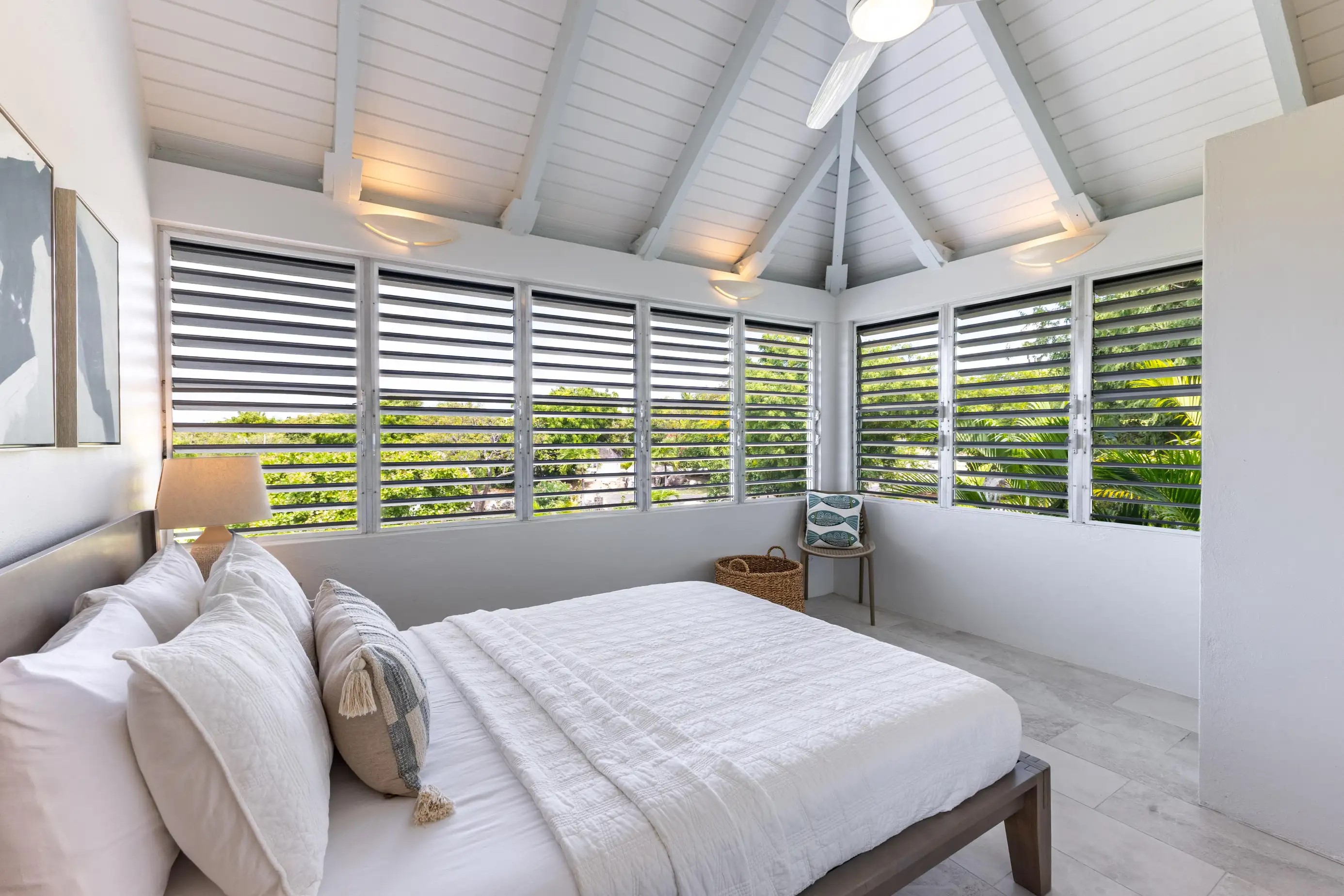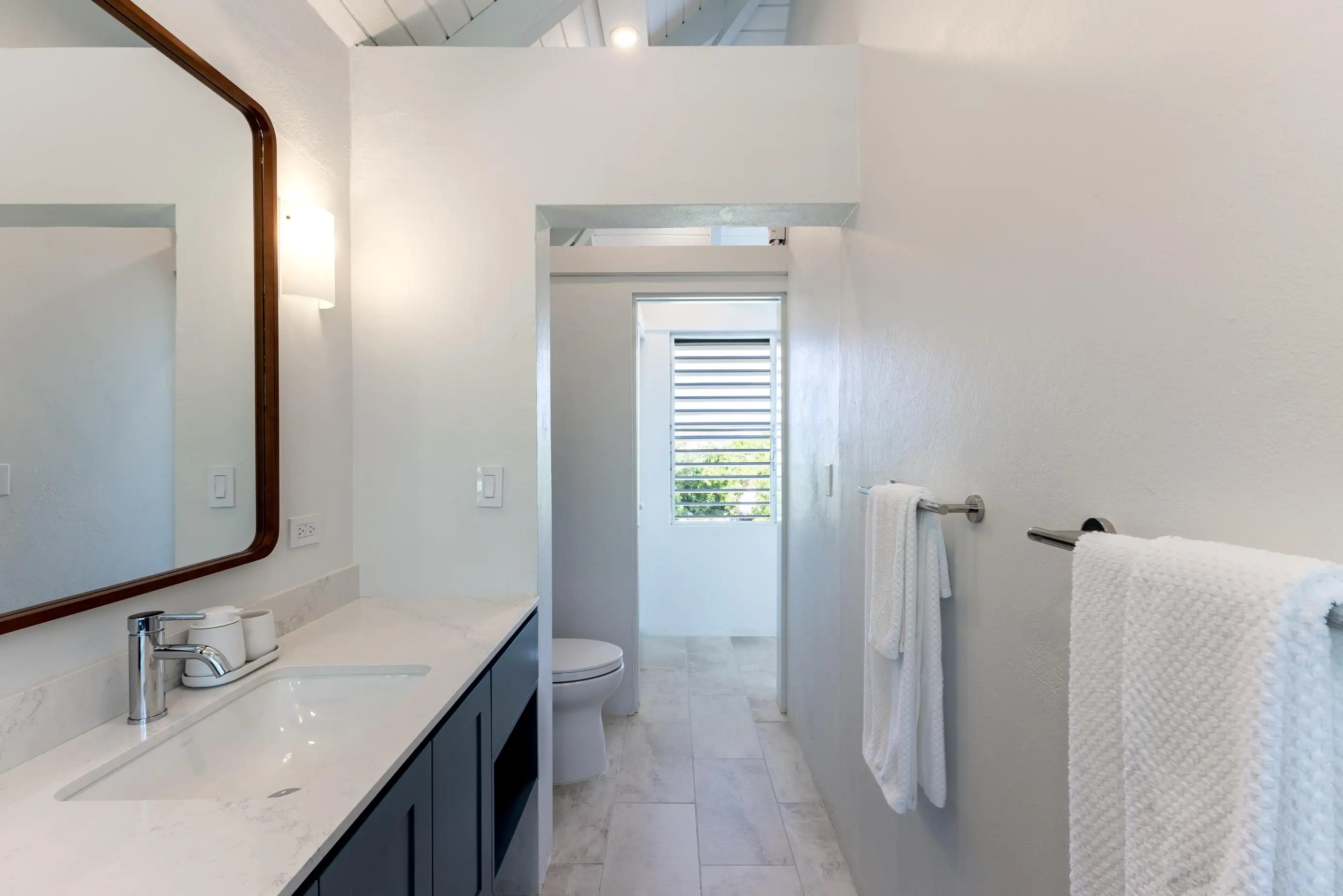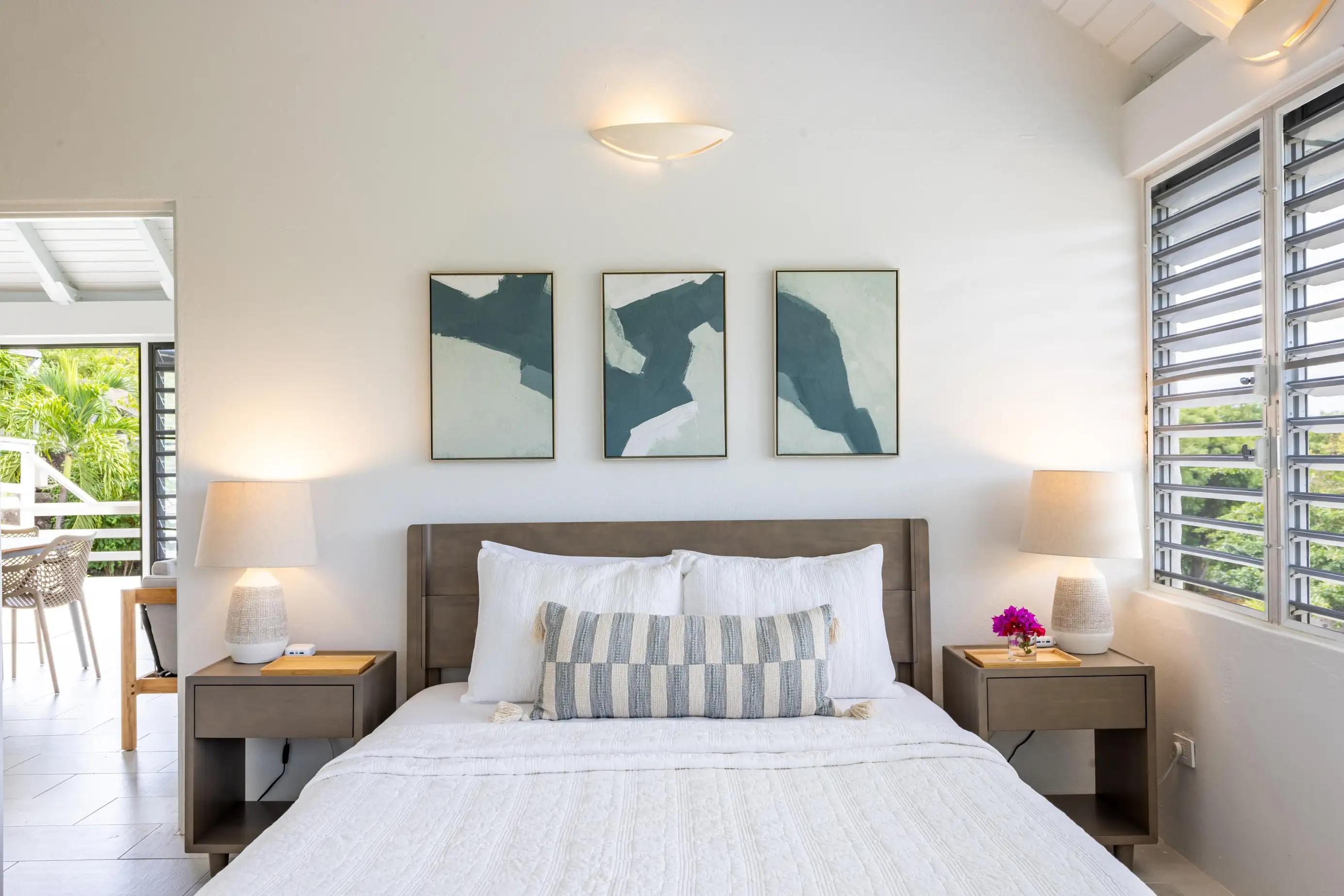 Turnstone Villa is a modern refresh of a classic Caribbean beach house with louvered windows, tall ceilings & large open spaces cooled by island breezes. The villa can sleep up to 8 guests comfortably & is ideal for groups, families or a couple looking for a private getaway. The upper-level master suite is equipped with a king-size bed & overlooks the pool area and Sir Francis Drake Channel. The second queen bedroom is directly off the main living space on the upper level with views of the water and islands to the West. The third bedroom is on the lower level with 2 queen-sized beds & is perfect for kids. All of the bedrooms have en suite bathrooms.