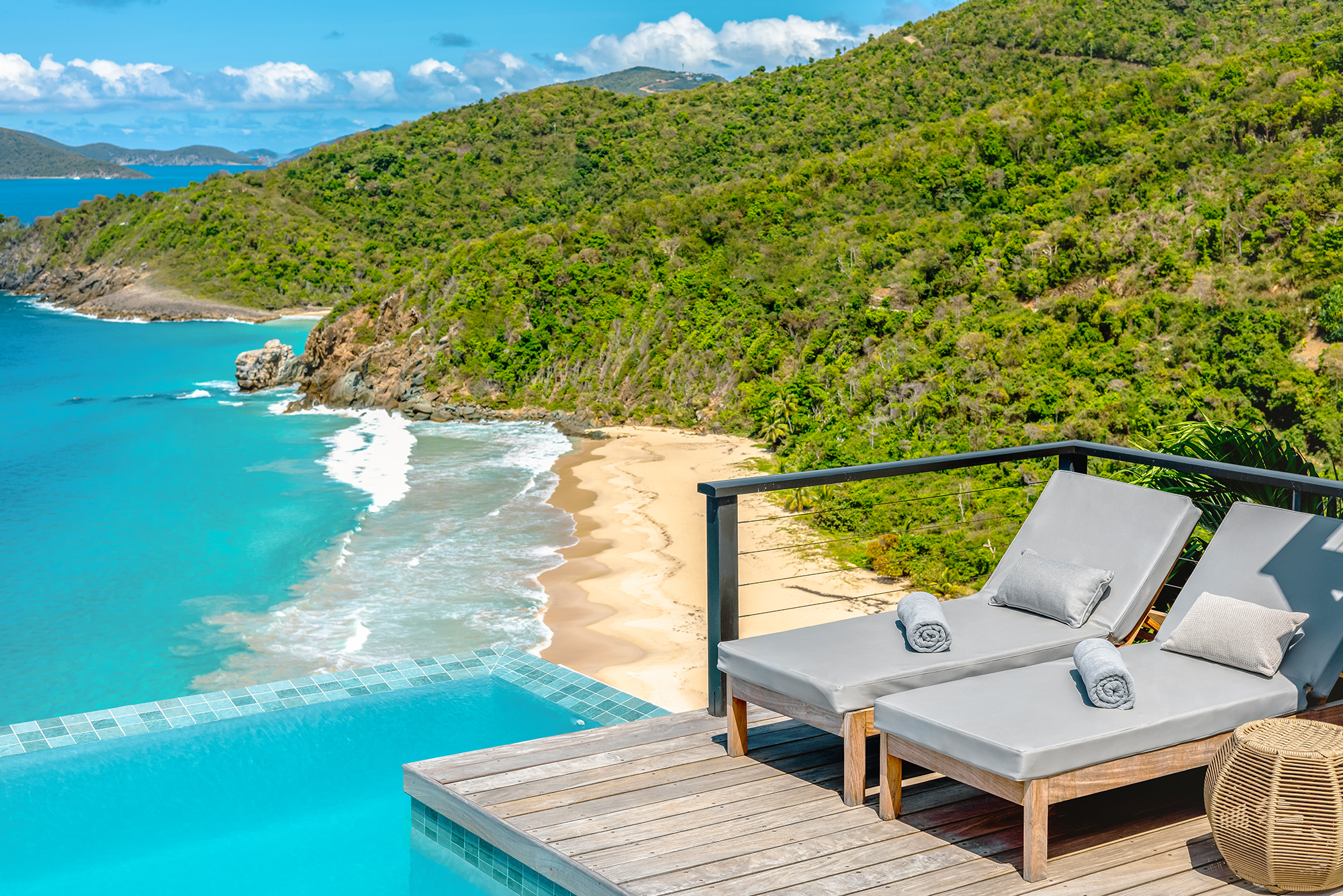 Aja is a secluded sumptuous villa perched over Trunk Bay Beach on the north shore of Tortola in the British Virgin Islands. The villa offers a unique & memorable experience where you’ll feel pampered in the luxurious surroundings. The outstanding location offers both nature & mesmerising sound of waves lapping the shore.