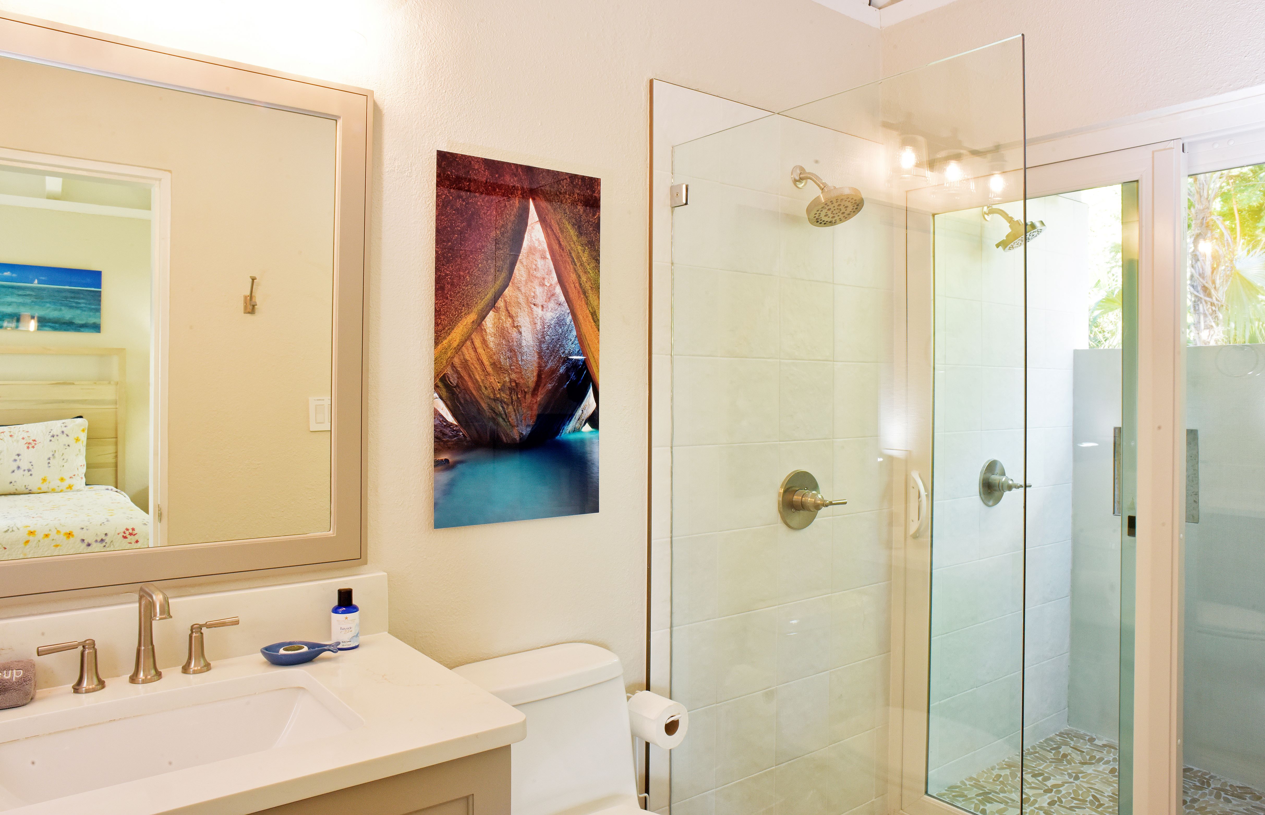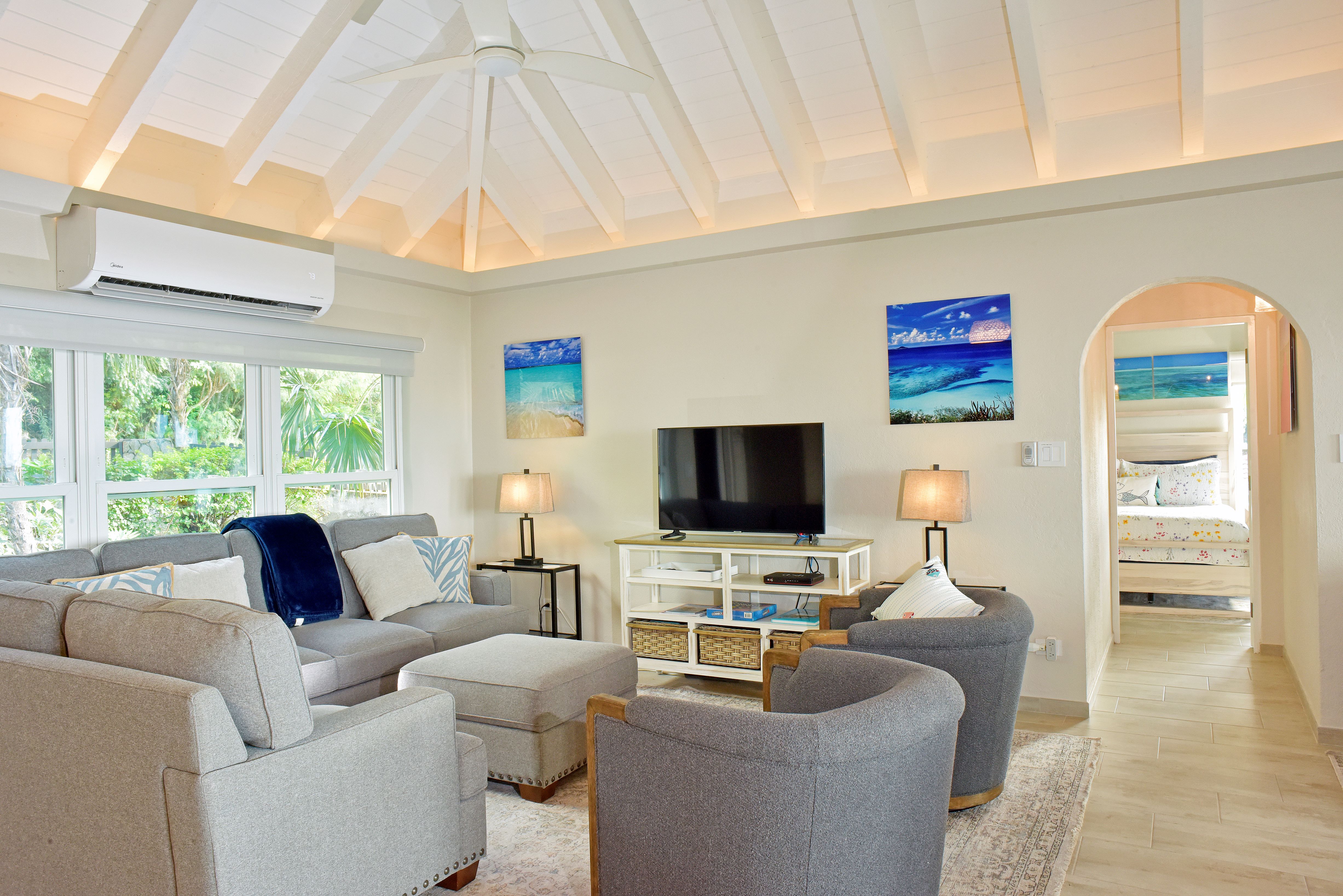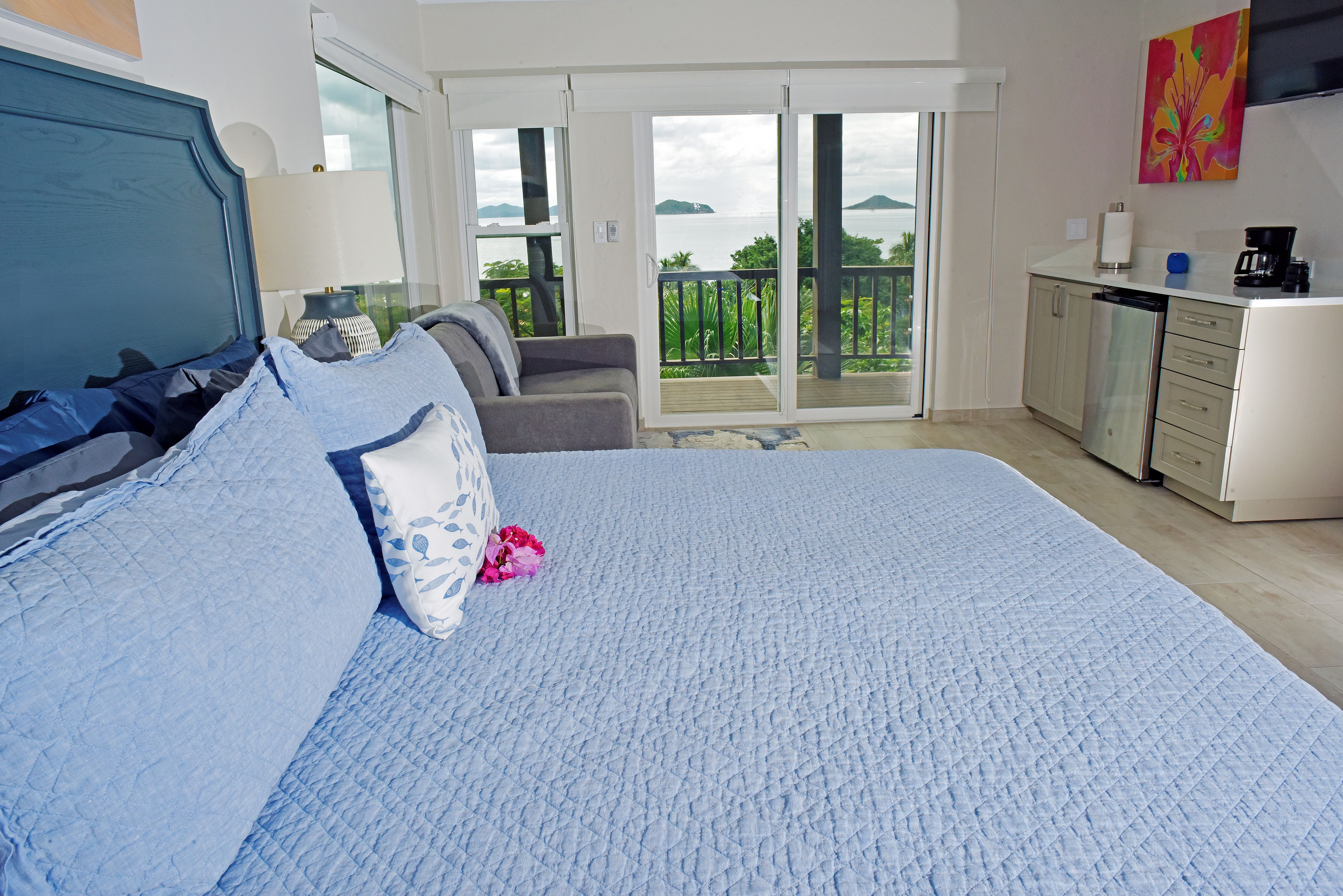 Mahoe Bay’s pearl white sugar-sand beach is just 100 yards away with spectacular sunsets most evenings.