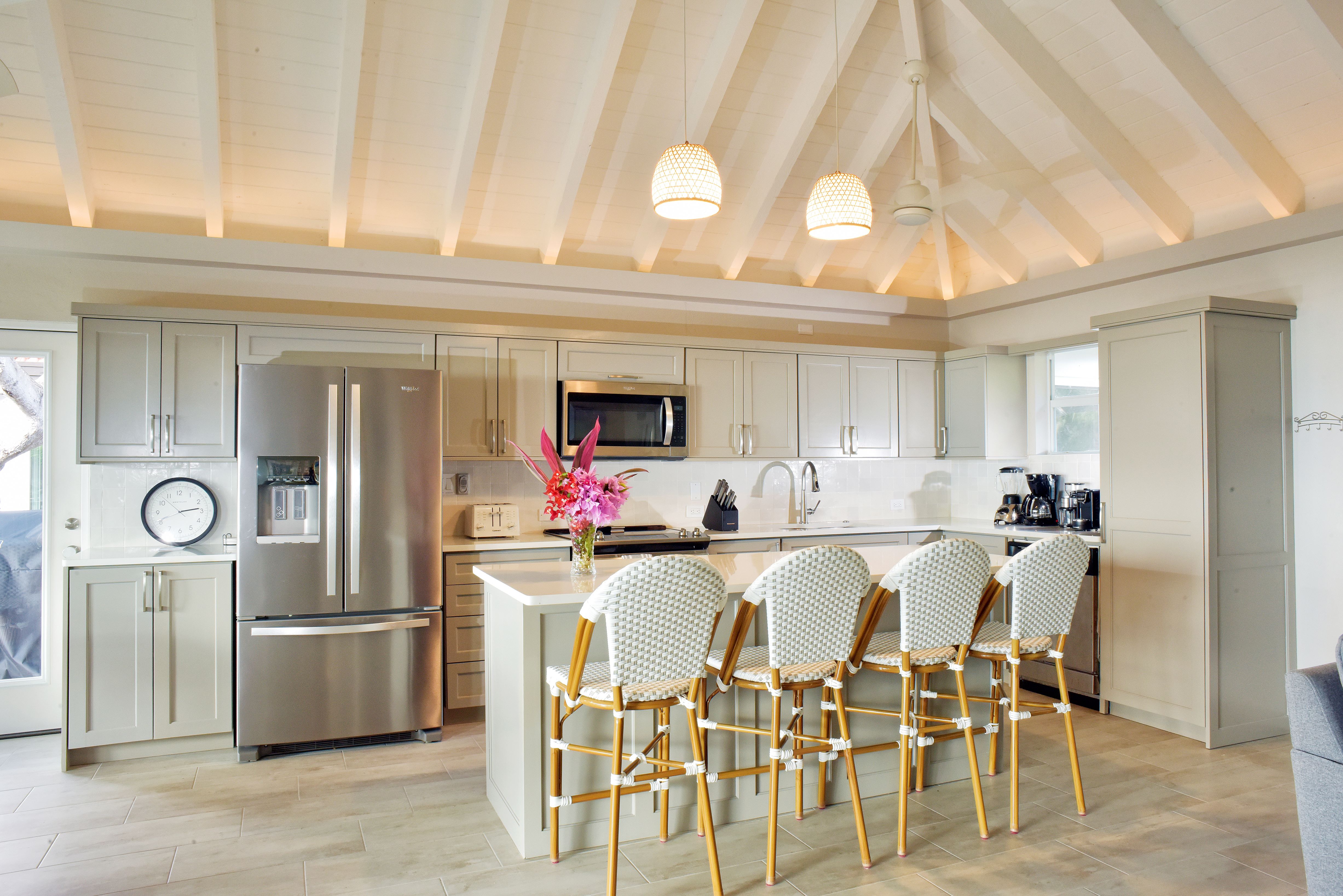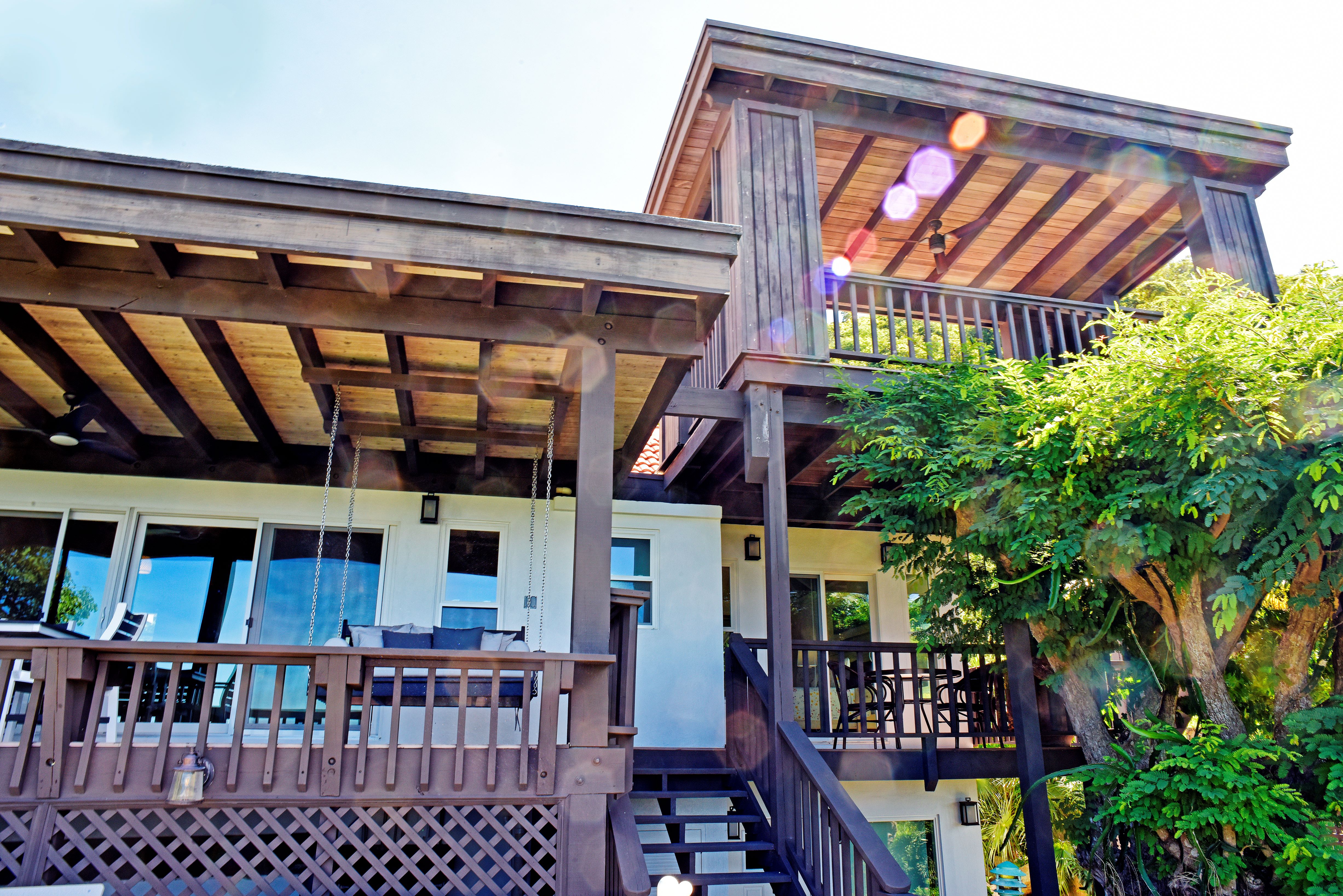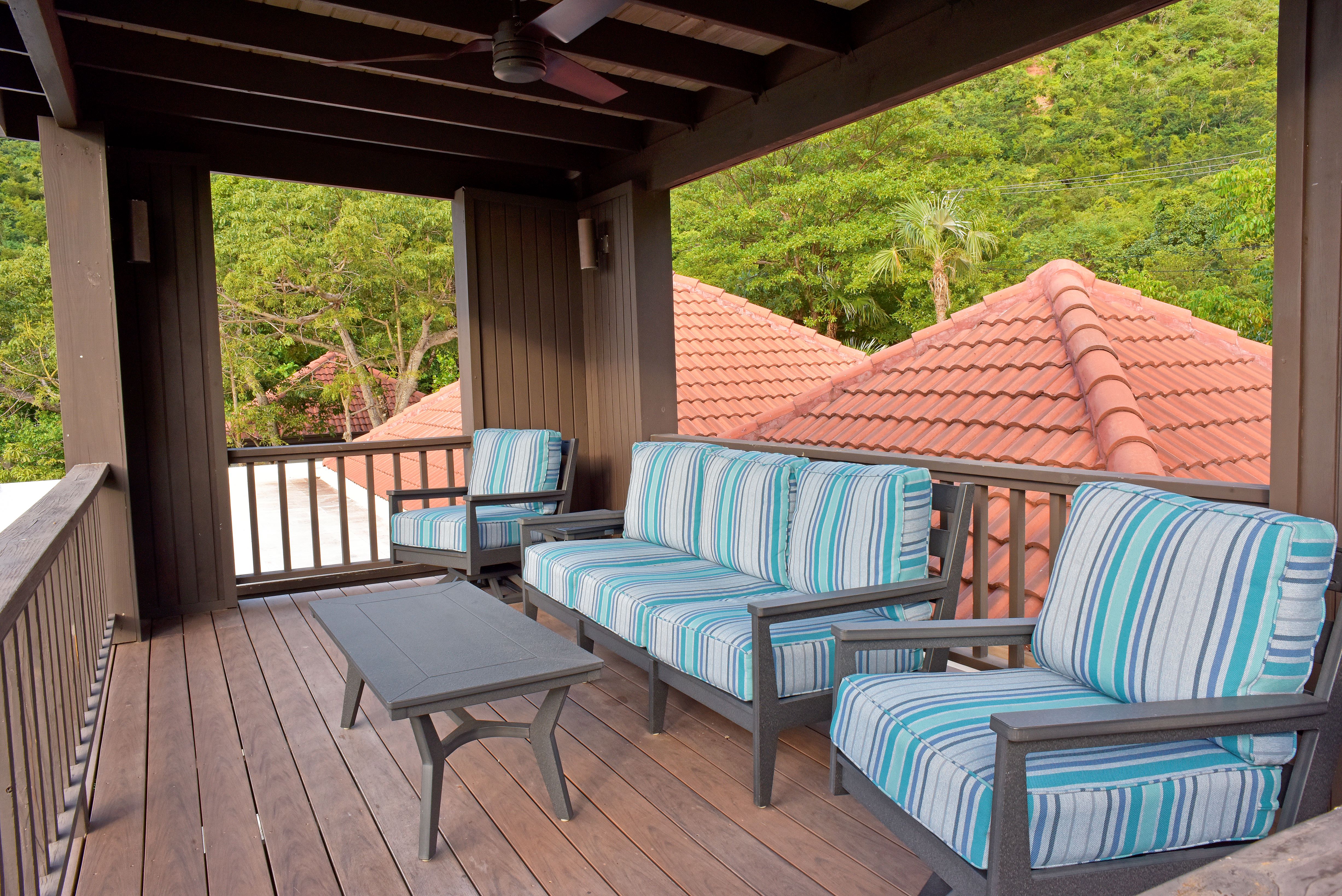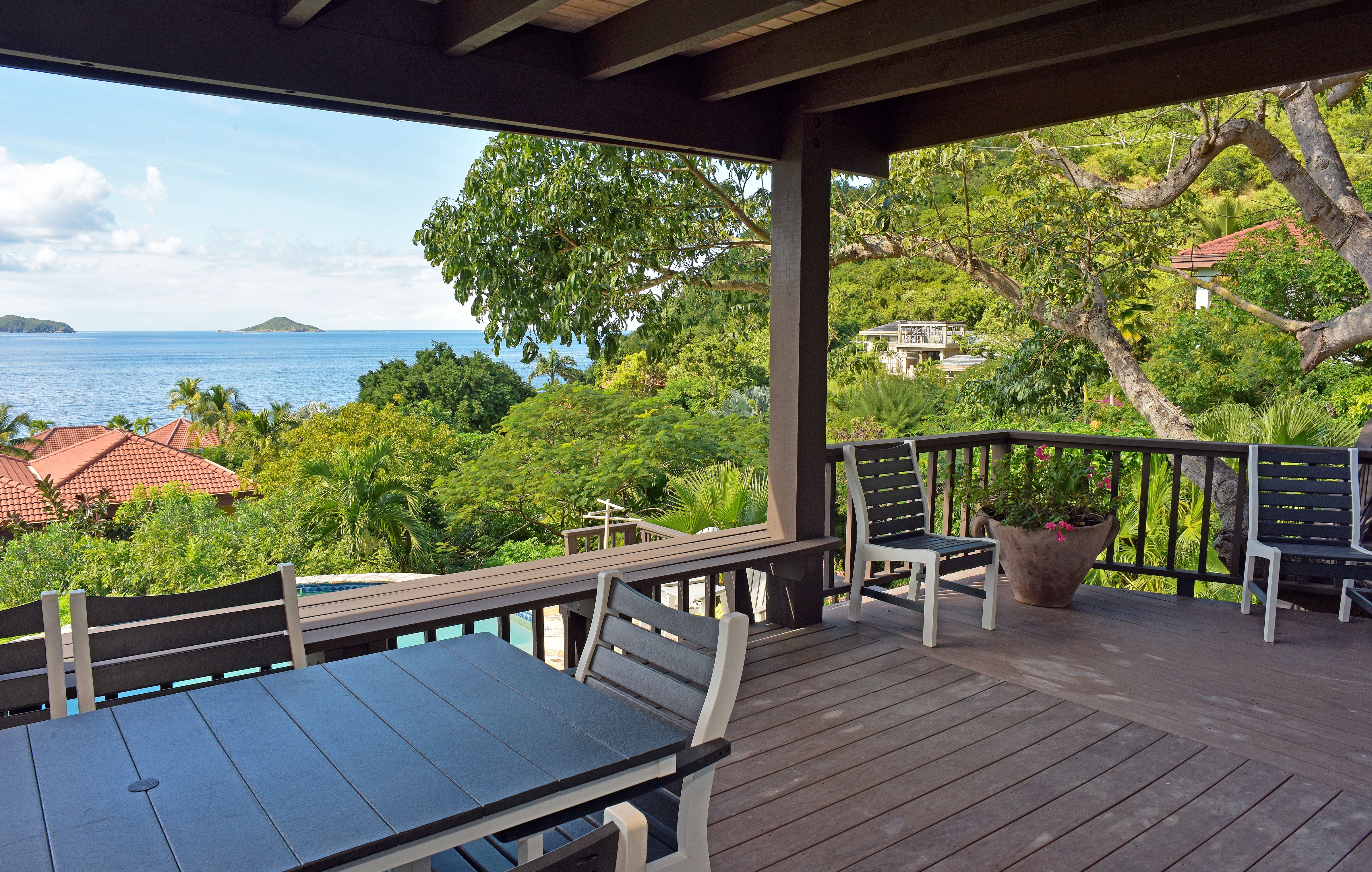 The kitchen for any budding chefs gives a home feeling along with an new place to create something special for you and your guests. The views from this villa invite you towards the ocean where you will marvel at the stunning scenery. Sunsets are special also from this villa. BBQ dining is fun at Villa del Sole & the outdoors awaits! A few steps down from the covered deck is the sun deck & pool.